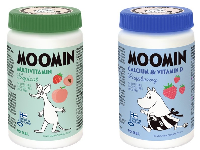 The chewable tablets suit children and adults from 3 years of age. They contain only natural colours and flavours, use xylitol as a sweetener, and are free from gluten, lactose, and milk. The series includes familiar favourites such as Vitamin D in two flavours, Vitamin C & D, Multivitamin Tropical and Calcium & Vitamin D Raspberry. Each product is represented by one of the recognised Moomin characters.