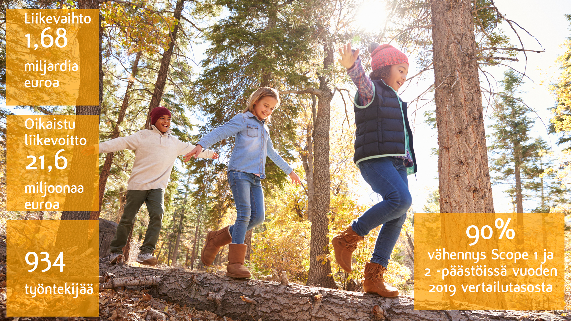 Vastuullisuusagendassamme on kolme pääteemaa: Ympäristö, Ihmiset ja Hallinnointi ja yhteiskunta. Olemme asettaneet kunnianhimoiset pitkäaikaiset tavoitteet ohjaamaan vastuullisuustyötämme. Lue lisää: